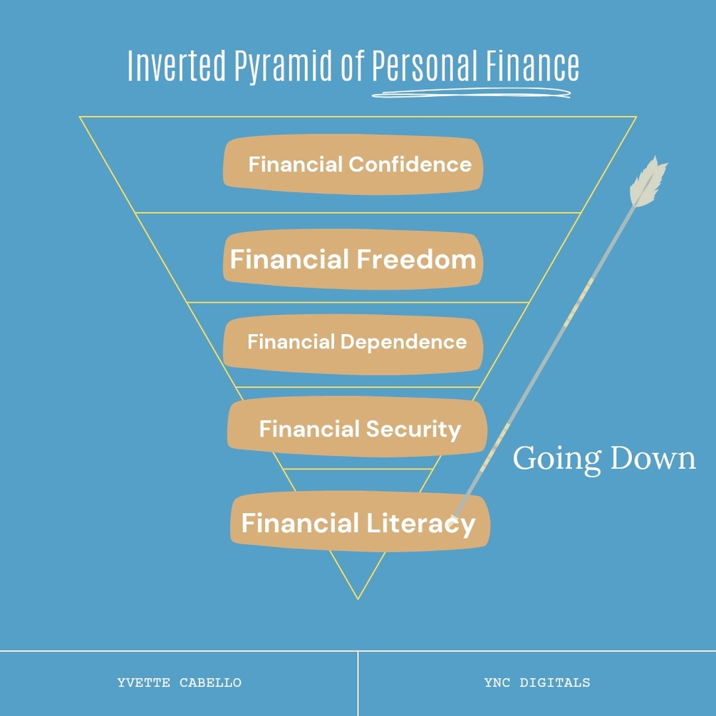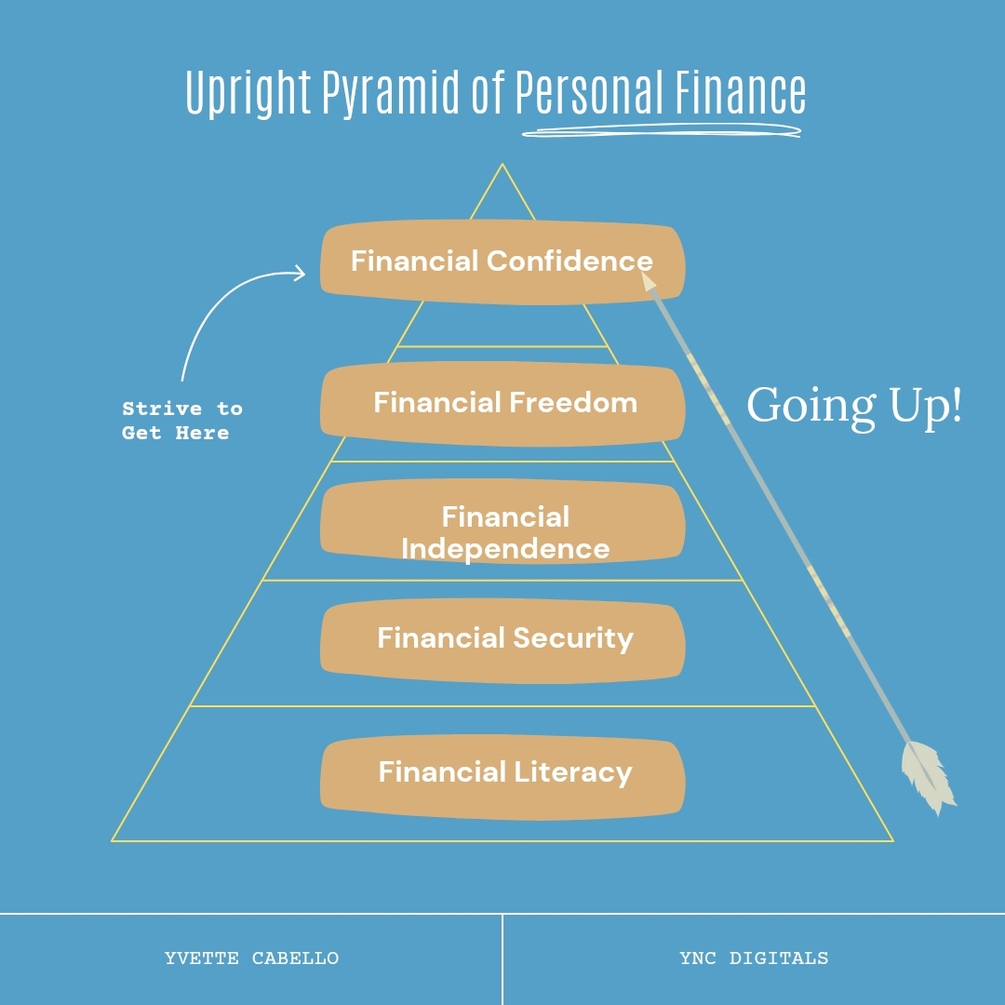 On the other hand, only a few people follow the upright pyramid. In this pyramid, they start with financial literacy. They study how to handle and manage money first. Then, they work their way up to be financially confident, the highest level in personal finance.